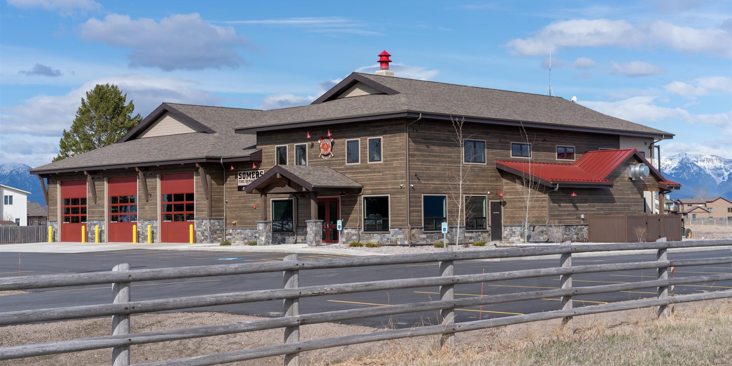 We worked with the local community to provide a new fire department and community facility. The building incorporates ample fire truck and equipment storage, communication offices, as well as a community room with a kitchen. The project was phased in a way that allowed for the addition of upper level fire fighter quarters and training facilities. Stone wainscot, timber beams, and accent metal siding were used in an economical way to create an exterior that would be neighborhood friendly and require minimal maintenance. This building will be a community benefit for many years to come.